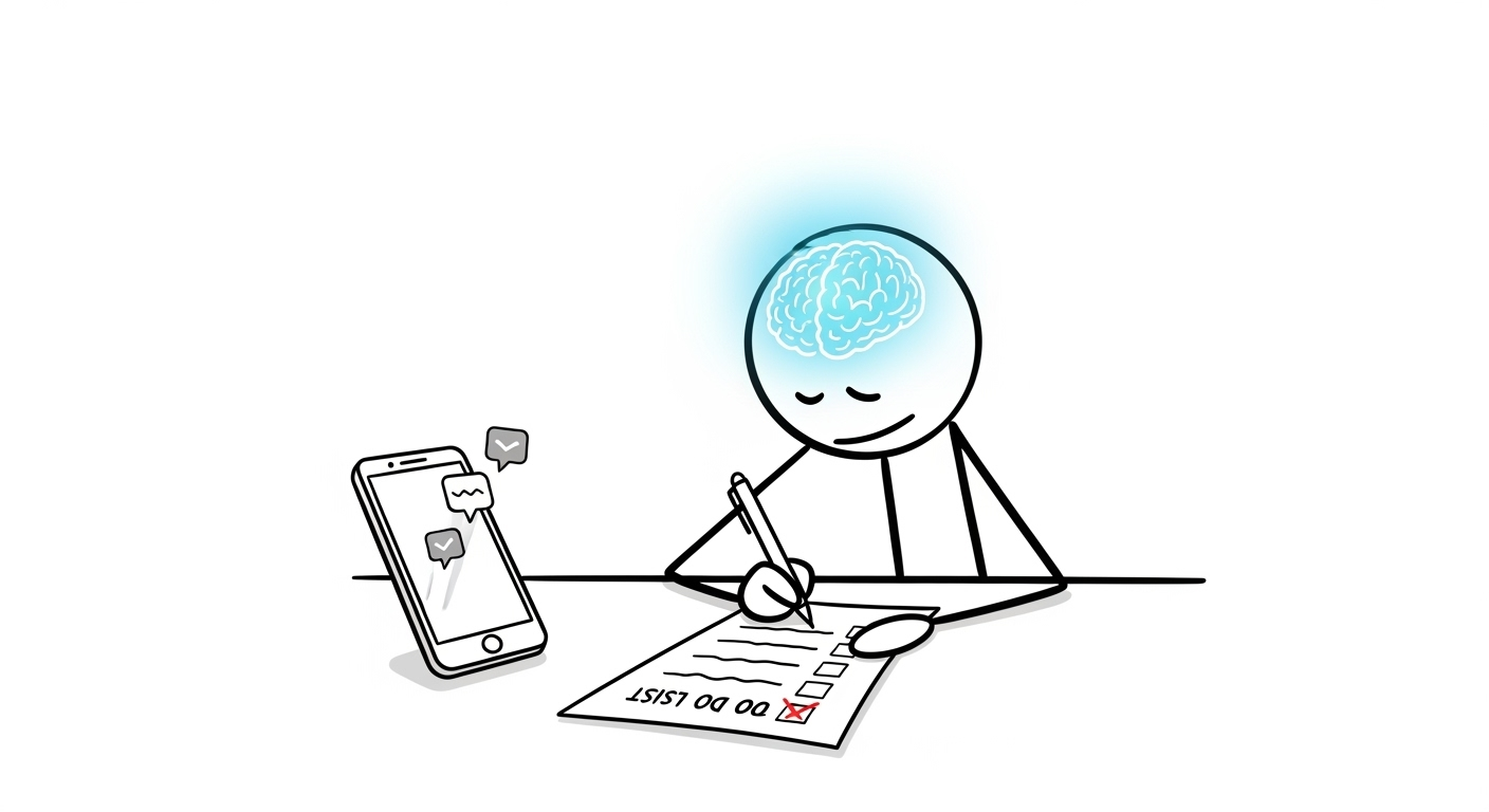 마지막으로 기록과 피드백 루틴 만들기입니다. 플래너, 일지, 체크리스트를 활용해 목표 진행 상황을 시각화하면 전두엽이 자기조절과 예측 기능을 더 잘 수행합니다. 기록은 전두엽에게 명확한 정보를 제공하여 더 나은 판단과 계획을 가능하게 합니다.