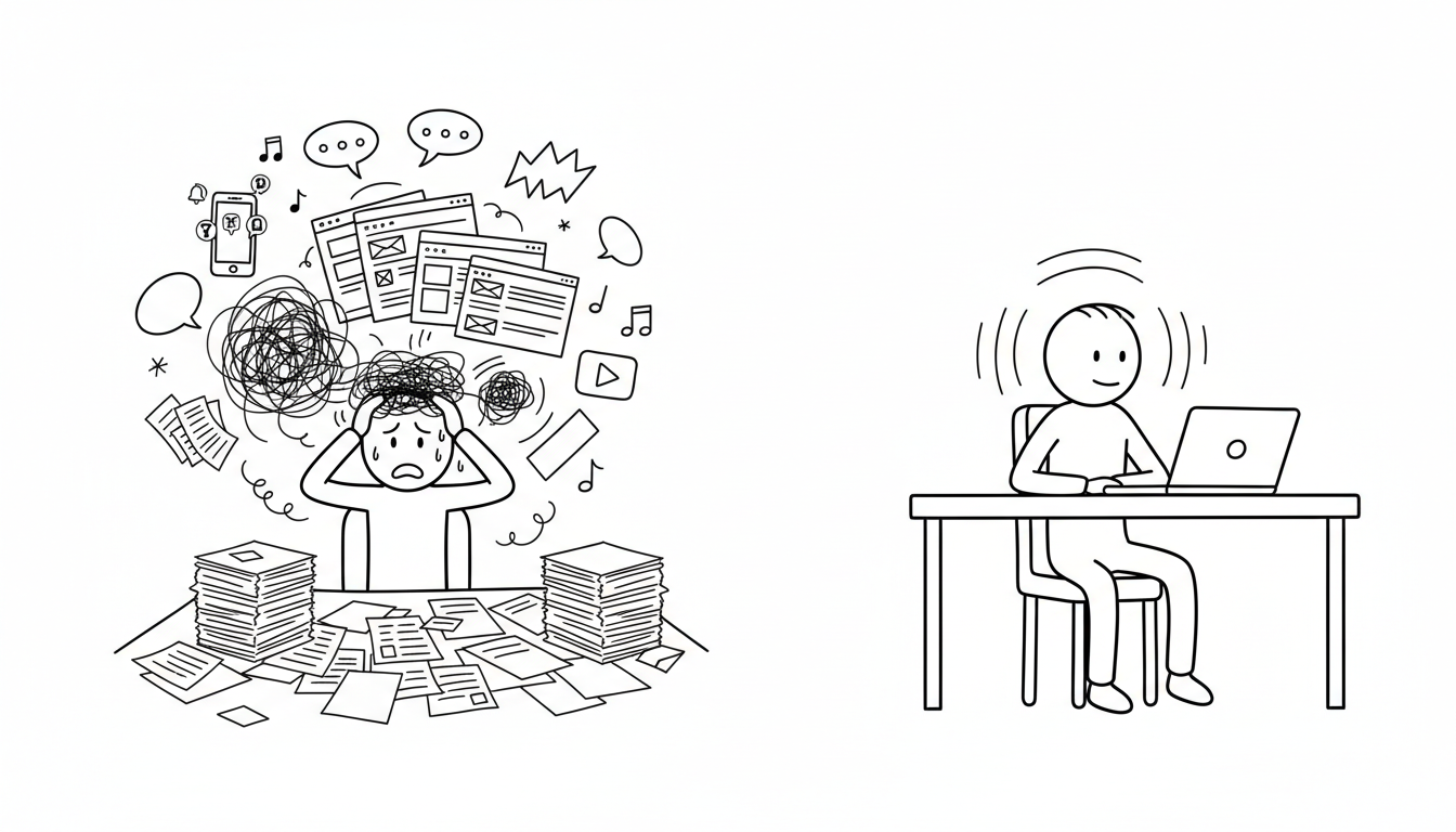 - 정리 시간 부족: consolidation이 필요한데, 알림과 전환이 그 시간을 계속 잘라먹습니다.