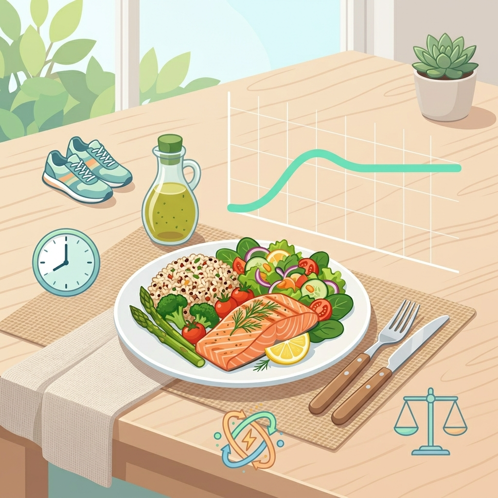 혈당을 낮추기 위해서는 무엇을 먹느냐보다 ‘어떻게 먹느냐’도 매우 중요합니다. 우선 식이섬유가 풍부한 채소를 먼저 섭취하면 탄수화물의 흡수를 늦춰 혈당 상승을 완만하게 만들 수 있습니다. 이어서 단백질과 지방을 섭취하고, 마지막으로 탄수화물을 먹는 ‘식사 순서 조절’은 혈당 관리에서 매우 효과적인 방법으로 알려져 있습니다. 또한 당지수(GI)가 낮은 음식 선택도 중요합니다. 흰쌀밥, 흰빵과 같은 정제 탄수화물 대신 현미, 통곡물, 고구마 등을 선택하면 혈당 상승 속도를 줄일 수 있습니다. 여기에 단백질 식품을 함께 섭취하면 포만감이 오래 유지되면서 과식을 예방하는 효과도 있습니다. 최근에는 식초나 레몬과 같은 산성 식품이 혈당 반응을 완화하는 데 도움이 된다는 연구도 주목받고 있습니다. 식사 전에 소량의 식초를 물에 희석해 섭취하거나 샐러드 드레싱으로 활용하는 방식이 대표적입니다. 다만 개인 체질에 따라 자극이 될 수 있으므로 적절한 양을 지키는 것이 중요합니다.